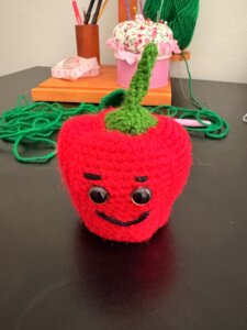 I właśnie wtedy zaczęło się coś niepokojącego. Pojawiła się myśl. Taka mała, cicha, ale bardzo uparta. Skoro mam już ogórka i ziemniaka… to czemu nie pójść o krok dalej? Przecież są inne warzywa. Kolorowe, ciekawe, o pięknych kształtach. A szydełkowanie warzyw to przecież idealna wymówka, żeby nie przestawać szydełkować.